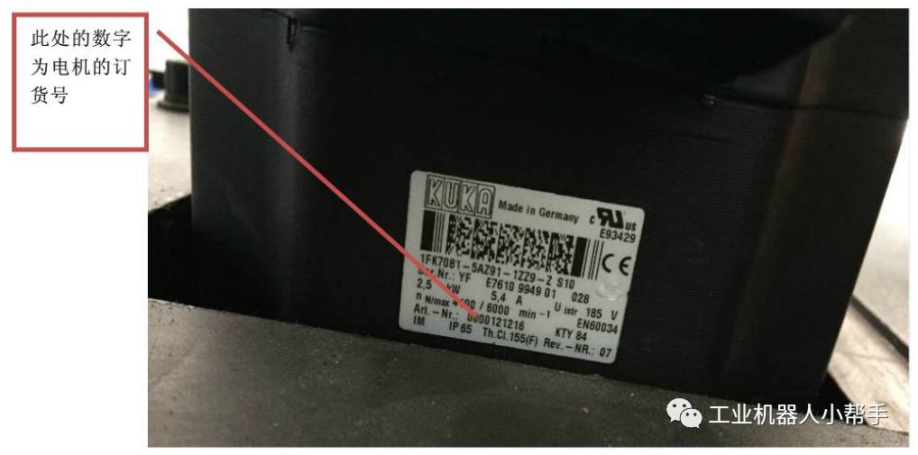 例如下圖中的電機的訂貨號后六位是121216,參考KUKA文件可查出電機型號為MX_110_130_40_S0