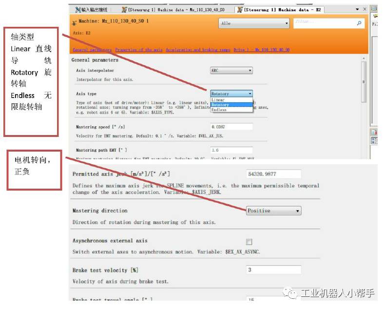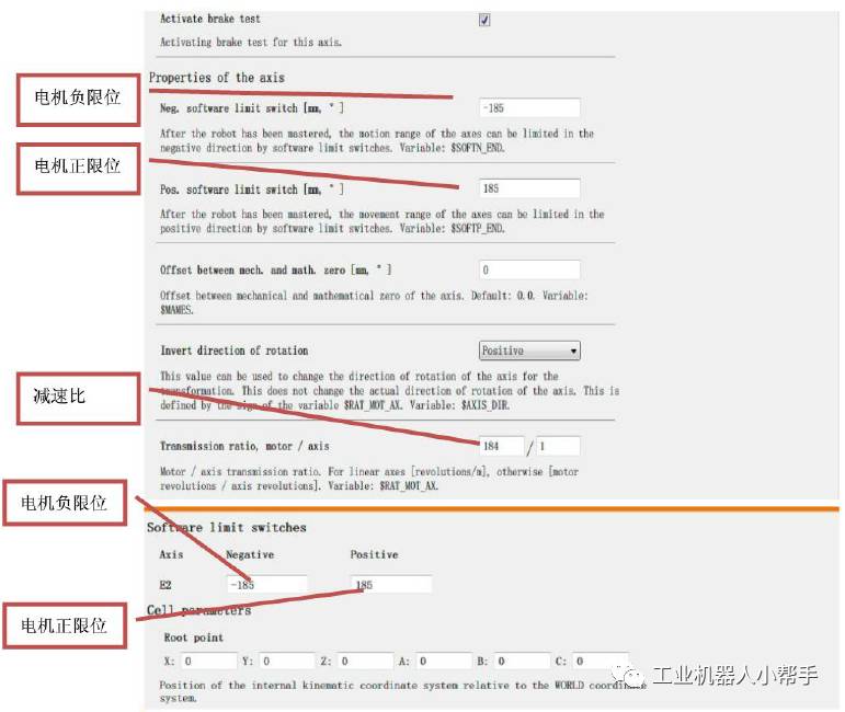 參數主要有限位,電機轉向,軸的類型,減速比等參數
